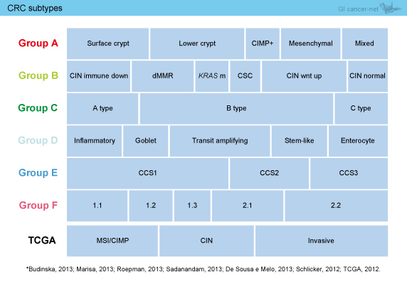CRCSCは、各研究グループの「collaboration and sharing」の精神に基づき、癌のサブタイピングに関する新しい方法論を作り上げた。大規模な大腸癌サンプルを使用して4つの生物学的なサブタイプを同定し、術後大腸癌の予後予測が可能なことを示した。