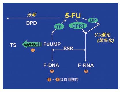 300mg/m2/日+経口LV 90mg/日、28日連続投与法と5-FU+LV(RPMI regimen)を比較しており、まだ最終結果は報告されていないが中間報告では奏効率や生存率に両群間で差はなく、副作用はUFT+LV群で有意に少なかった。C-07においてはoxaliplatinと5-FU+LVとの併用投与について検討している。1998年、アメリカの大規模比較試験Intergroup