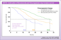 さらにARIESでは、1st-lineでBevacizumabを投与しPDに至った症例を対象に、BRiTEと同様の検討を行っています。初回PDから2ヵ月後の2nd-line以降のOSは、非BBP群の7.5ヵ月に対しBBP群では14.1ヵ月4)と、やはり2倍近い差がみられます(図3)。
